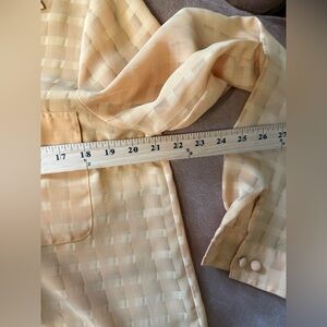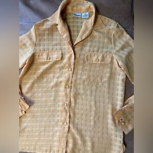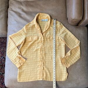 Vintage Liz Baker Yellow Checkered Sheer Blouse Button Down Women’s Size 10 Tall