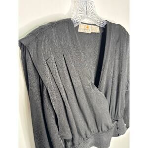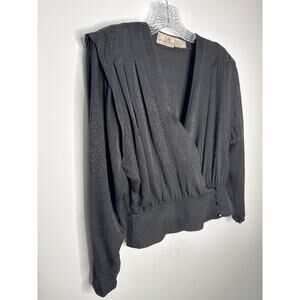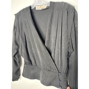 Vintage Liz Claiborne 100% Silk Wrap Blouse Black Jacquard 80s Small