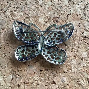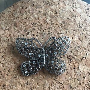 Vintage Liz Claiborne 2” Filigree and Rhinestone Silver Tone Brooch