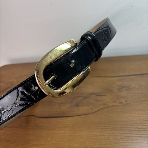 Vintage Liz Claiborne Black Textured Patent Leather Size Medium Belt READ