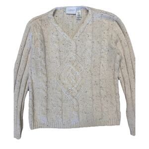 Vintage Liz Claiborne Cable Knit Women’s Comfy Sweater Cream Size S