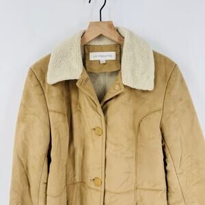 Liz Claiborne Camel Faux Shearling Fleece Lined Button Front Coat Size S