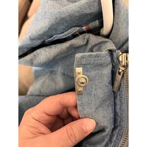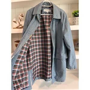 Vintage Liz Claiborne Chambray Jacket Medium Detachable Hood Plaid Lining 90s