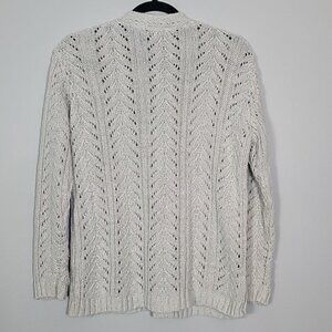 Vintage Liz Claiborne Chunky Knit Sweater Size L Ivory Cream Linen VNeck Coastal