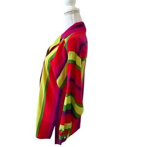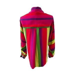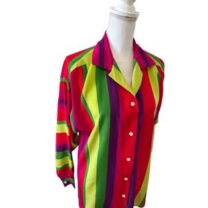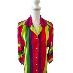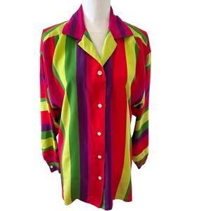 Vintage Liz Claiborne Colorful Stripe Silk Button Down Shirt Red Purple Green 8