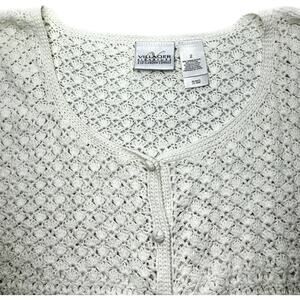Vintage Liz Claiborne Crochet Ivory Knit Sweater Vest Button Front Size Large