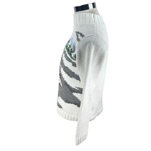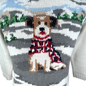 Liz Claiborne Sweater Womens Small White Dog Knitted Cotton Long Sleeve Pullover