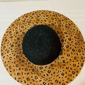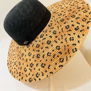 Vintage Liz Claiborne Fashion Summer Straw Hat with Leopard Print