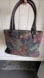 Vintage Liz Claiborne large structured tote bag featuring a dark floral tapestry design. Handles feature an embossed vegan leather croc pattern Light signs of wear, but overall in great condition inside and out.