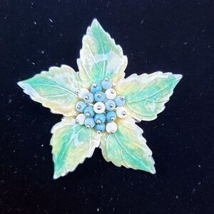 Vintage Liz Claiborne Flower Brooch Pin Enamel Beaded Green