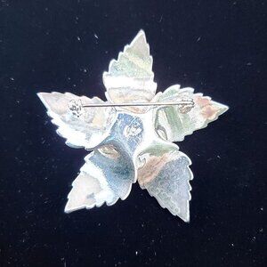 This vintage Liz Claiborne flower brooch pin boasts a beautiful enamel beaded design in a striking mint green and silver color. Perfect for adding a chic, retro touch to any outfit.