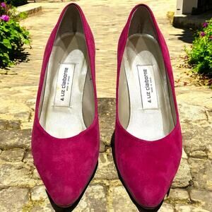 Vintage Liz Claiborne Fuchsia Magenta Pumps Pink Suede Heels Size 7.5