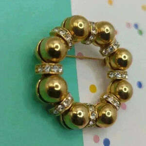 Vintage Liz Claiborne Gold Tone Ball Clear Rhinestone Rondell Circle Pin Brooch