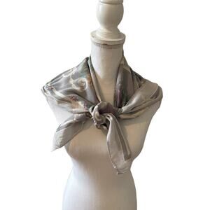 Vintage Liz Claiborne Large Square Silk Chiffon Scarf Gray Plum Floral Print. Good preowned condition