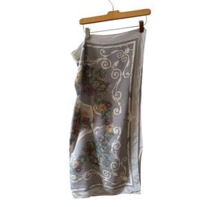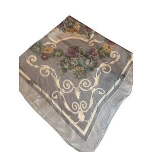 Vintage Liz Claiborne Large Square Silk Chiffon Scarf Gray Plum Floral Print