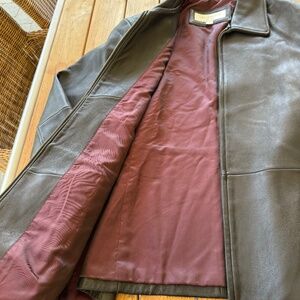 Black vintage Liz Claiborne oversized leather jacket. Size women's 1X, but fits like a chic oversized on me (size S). Maroon interior, small imperfections as seen in the photos. Beautiful vintage piece for winter!