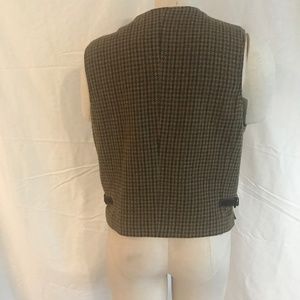 Vintage Liz Claiborne Lizsport Herringbone Vest. Size 10. Tan/Brown/Burgundy/Green. Fully Lined. Leather adjustable belt waist cinch