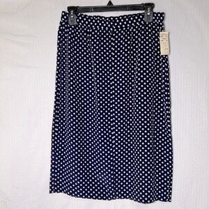 New With Tag Vintage Liz Claiborne Navy w/White Design Lightweight Midi Skirt- 12 Petite.