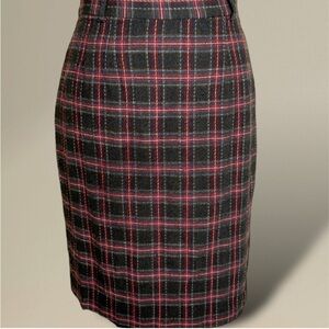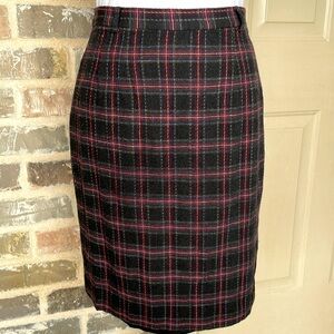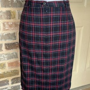 Vintage Liz Claiborne Plaid Wool Pencil Skirt Preppy Charcoal Red Blue Size 8P