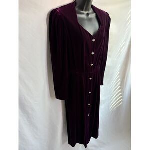 Vintage Liz Claiborne Purple Velvet Midi Dress Rhinestone Button 10s Retro Size