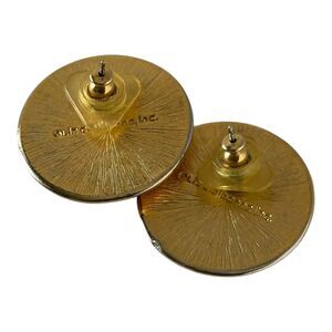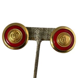Vintage Liz Claiborne Red And Gold Crest Button Style Earrings Pierced