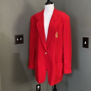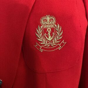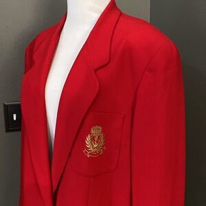 Vintage Liz Claiborne Red Oversized Blazer Jacket Gold Nautical Buttons