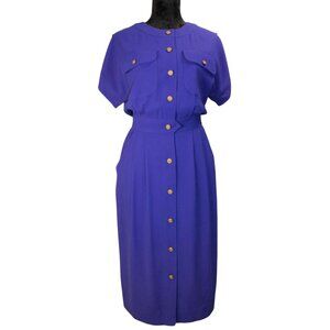 Vintage Liz Claiborne Royal Blue Dress w/ Gold Crest Buttons