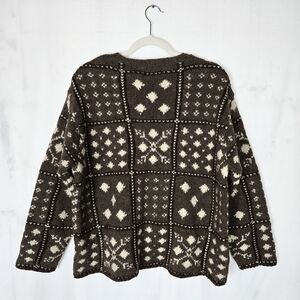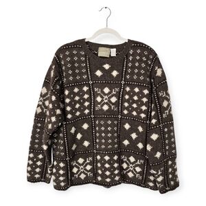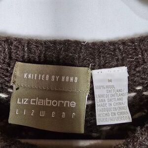 Vintage Liz Claiborne Shetland Wool Square Pattern Boxy Intarsia Knit Sweater