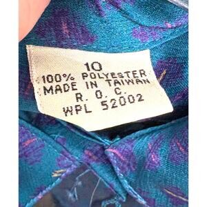 Vintage Liz Claiborne Teal Purple Print Blouson Blouse Size 10 Secretary Style