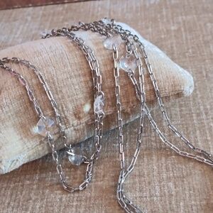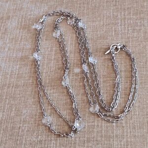 Vintage Liz Claiborne Two Strand Silver Tone Chain Clear Crystal Long Necklace