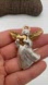 Sweet gold and silver tone angel brooch by Liz Claiborne. She has gold tone wings, halo and is holding a heart. Versatile brooch that can be worn outside the holiday season. The backside is great. The front has some discoloration or wear) see video please). I only gave her a light soap/water bath. She does not take a magnet. Signed LC.