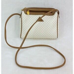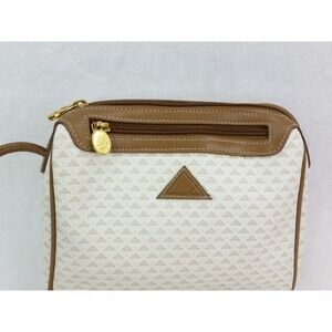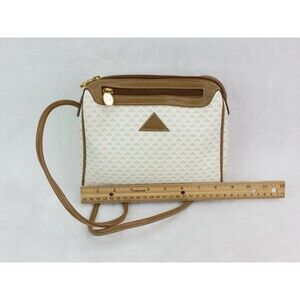 Vintage Liz Claiborne White Brown Leather Trim Crossbody Bag Shoulder Purse Y2K
