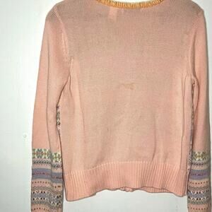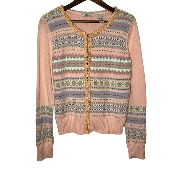 Vintage Liz Claiborne Women’s L Cardigan Peach Pink Velvet Ruffle Boarder Coquette Valentine’s Day