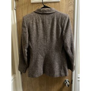 Vintage Liz Claiborne Wool Blazer Heather Brown 1 Button with Pockets Size 10