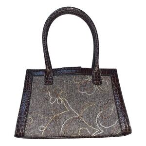 Vintage Liz Claiborne Wool Blend Tweed Embroidered Micro Shoulder Bag