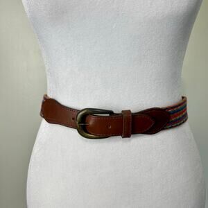 Vintage Liz Claiborne Woven Belt Leather USA Medium Southwestern Preppy