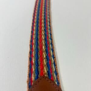 Vintage Leather Woven Belt - red, blue, tan - with metal buckle, unknown metal no markings if it is brass. Liz Claiborne