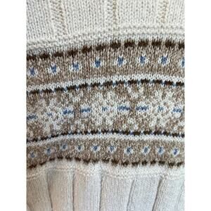 Cozy and charming Liz Claiborne cream zip-up sweater with subtle cottagecore vibes. Features ribbed texture, patterned knit panels on the chest, and contrast trim along the zipper, cuffs, and hem. Soft and comfortable cotton blend—perfect for layering in fall and winter.
