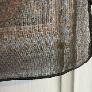 Vintage Liz Claiborne semi sheer polyester paisley print (black, brown, amber, blue & gray) square scarf