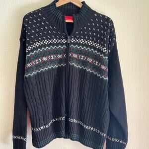 Vintage Liz Clairborne Cardigan Sweater Fair Isle Full Front Zip