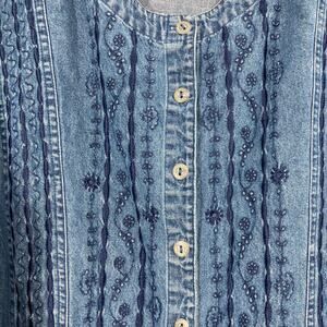 Vintage Liz & Me Embroidered Denim Cotton Button Short Sleeve Shirt Western 2X