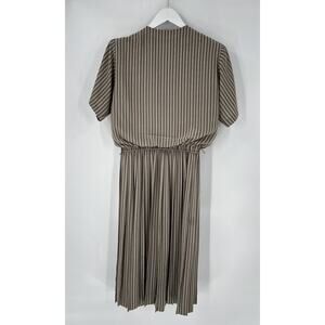 Vintage Liz Roberts Shirt Dress Womens Small Beige White Striped Ruffle Casual