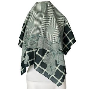 Lightweight square scarf. Green and white plaid with large bows at each of the corners