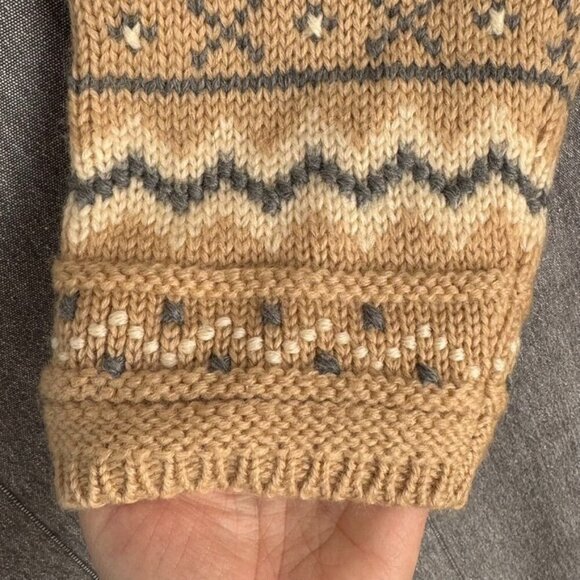 Vintage Liz Sport Tan Ivory Gray 100% Wool Fair Isle Open Front Cardigan Size M