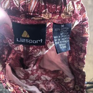 Liz Sport Women's Shorts Medium Modern Red Floral High Waisted Boho Cotton