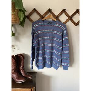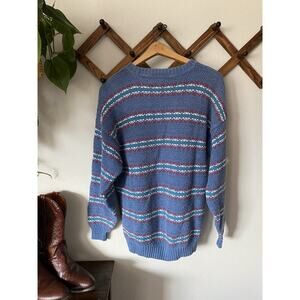 Vintage Liz Wear Sweater Women M Cotton Striped Chunky Liz Claiborne USA