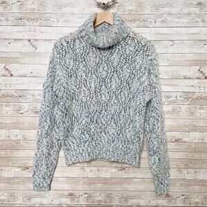 Vintage Liz Wear Turtleneck Pointelle Knit Sweater Blue Mohair 90s Beach Size S