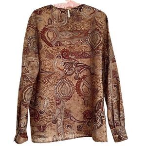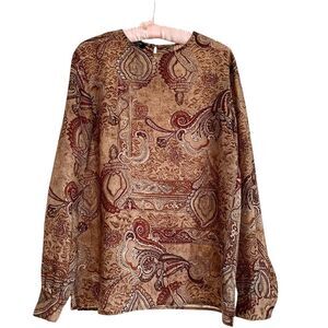 Vintage Liz Claiborne Lightweight Wool Long Sleeve Blouse Paisley Earthtones 10