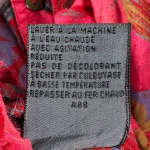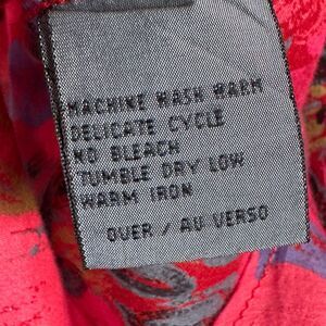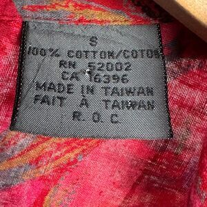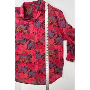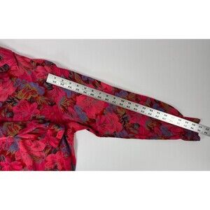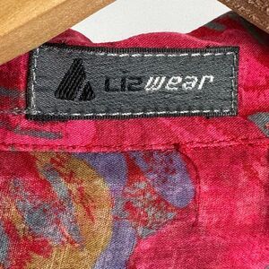 Vintage LizWear Womens Button Up Blouse Small Red Pink Floral Cotton 80s 90s