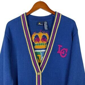 Vintage Lizsport Liz Claiborne Crest Cardigan Sweater Blue Button Front Womens L